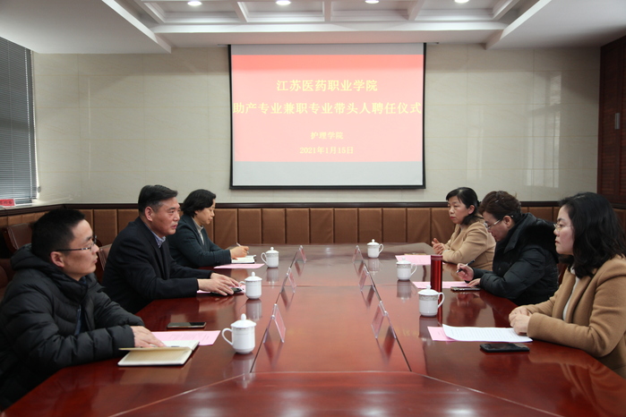 1月15日下午,我校在行政楼308会议室举行助产专业兼职专业带头人聘任仪式,聘请南京医科大学第二附属医院护理部主任褚志平为助产专业兼职专业带头人。副院长王辉,人力资源处、教务处、护理学院负责人参加了会议。会议由护理学院负责人主持。