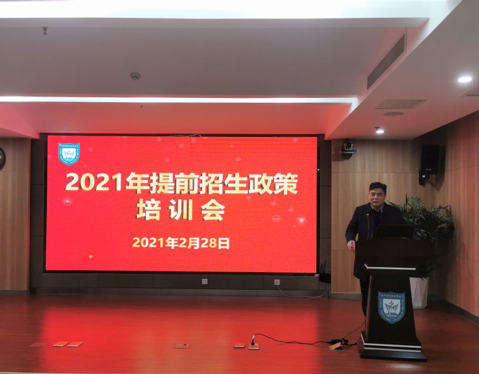 会上,学工处招生工作负责人从我省2021年提前招生政策变化、我校2021年提前招生章程、考生常见问题及回答技巧等方面做了详细介绍。随后,相关二级学院分别就本学院2021年提前招生专业的特色和优势做了具体介绍。
