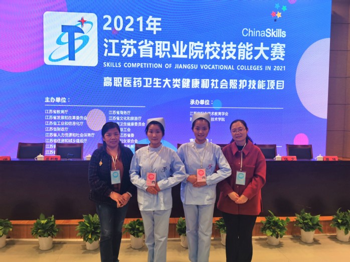 2021年江苏省职业院校技能大赛高职医药卫生大类“健康和社会照护”技能比赛于4月9-11日在苏州卫生职业技术学院举行。来自全省15所高职院校29名选手同场竞技,我校护理学院2018级护理9班黄委同学获大赛一等奖、2018级助产2班连朵同学获大赛二等奖(第一名),郑丹和朱娟两位老师获得优秀指导教师奖。