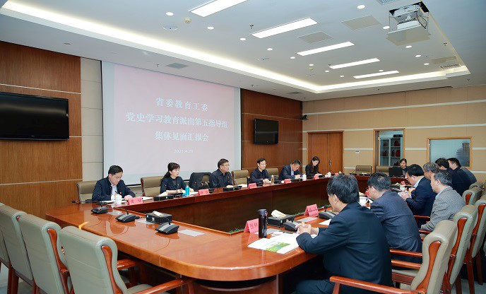 党委书记郝达富向派出第五指导组汇报了学校党史学习教育开展情况