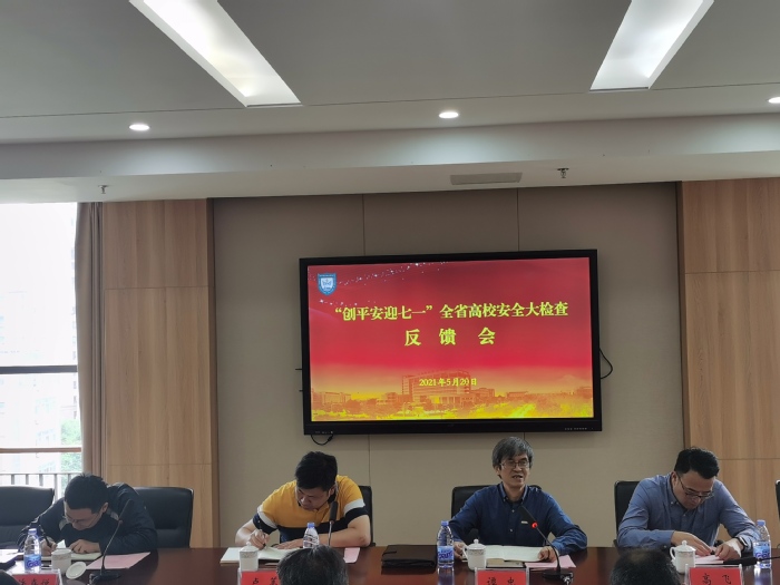 5月20日,江苏省高校安全大检查第五专家组一行4人莅临我校开展“创平安迎七一”安全检查工作。我校院长陈国忠,副院长王辉、高璀乡及相关职能部门负责人一行接待了检查组,并在学术会议中心第五会议室举行汇报会。