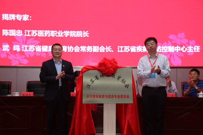 陈院长和武鸣主任为“江苏省健康教育协会社区健康教育与促进专业委员会”揭牌