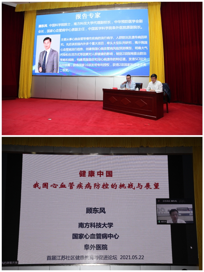 此次“社区健康教育与促进论坛”邀请南方科技大学、中国医学科学院阜外医院顾东风院士通过视频会议的方式作“健康中国——我国心血管疾病防控的挑战与展望”的主旨报告,邀请上海交通大学鲍勇教授作“新形势新医改新社区新健康”的主旨报告。来自南京医科大学、江苏省疾病预防控制中心、盐城市疾病预防控制中心以及南京市鼓楼区凤凰社区卫生服务中心的专家进行了精彩的学术交流。