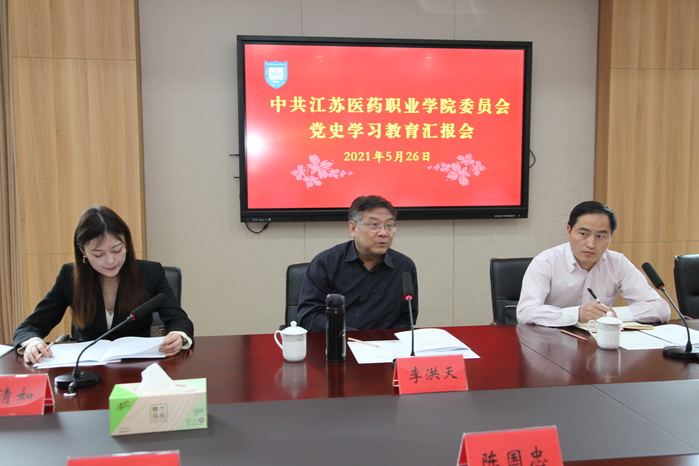 5月26日上午,省委教育工委党史学习教育派出第五指导组组长、江苏第二师范学院原党委书记李洪天,指导组成员南京审计大学党委组织部科长黄健,省教育国际交流服务中心项目主管赵清如一行来我校联系指导党史学习教育工作。全体校领导、校党史学习教育领导小组办公室全体成员参加了汇报会。