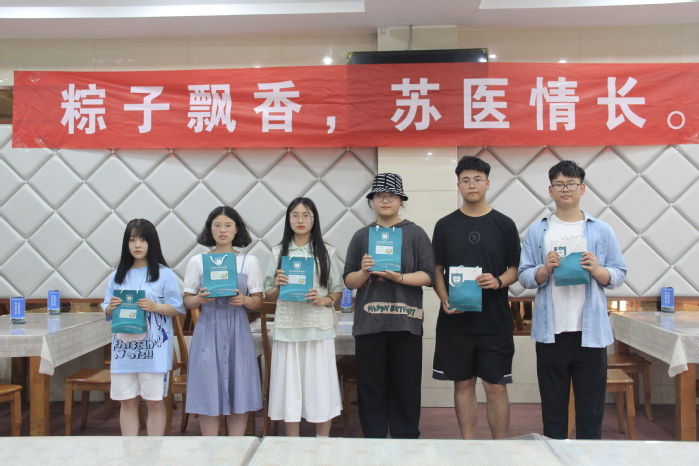 临近结束,副院长王辉表示:传统节日文化是一个民族的根脉。端午节作为我国的传统节日已有几千年的历史,通过今天的活动,大家将重温传统文化,牢记爱国初心。随后,王院长将饱含苏医爱心的粽子、鸭蛋等应节礼品送到同学手中,传递节日的温暖,希望同学们在接下来的考试中“高粽”,鼓舞他们的斗志,激励他们奋进。