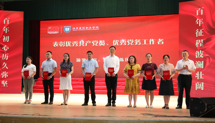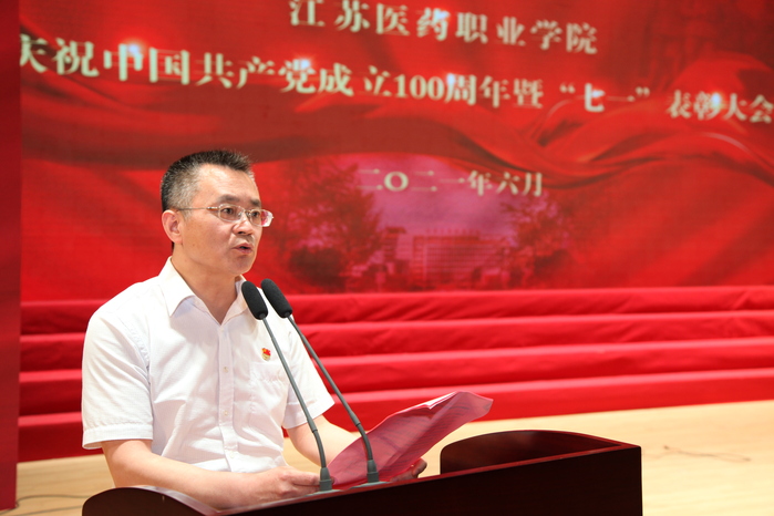 为庆祝中国共产党成立100周年,回顾党的光辉历程,讴歌党的丰功伟绩,传承党的光荣传统,6月28日,我校在艺术中心召开庆祝中国共产党成立100周年暨“七一”表彰大会。全体校领导、中层干部、“光荣在党50年”老党员代表、全体党员和师生代表参加会议。大会由党委副书记、院长陈国忠主持。