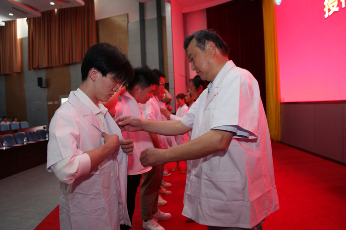 老师代表为毕业生代表授予白大褂