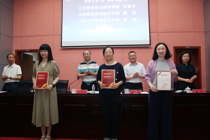 结业典礼上,江苏联合职业技术学院、硅湖职业技术学院、扬州市职业大学、江苏食品药品职业技术学院等四所学校的老师作为参培学员代表作学习经验分享和交流汇报。聂伟进主任、陈国忠院长为3名优秀学员颁奖,江苏联合职业技术学院张馨予老师作为优秀学员代表发言。