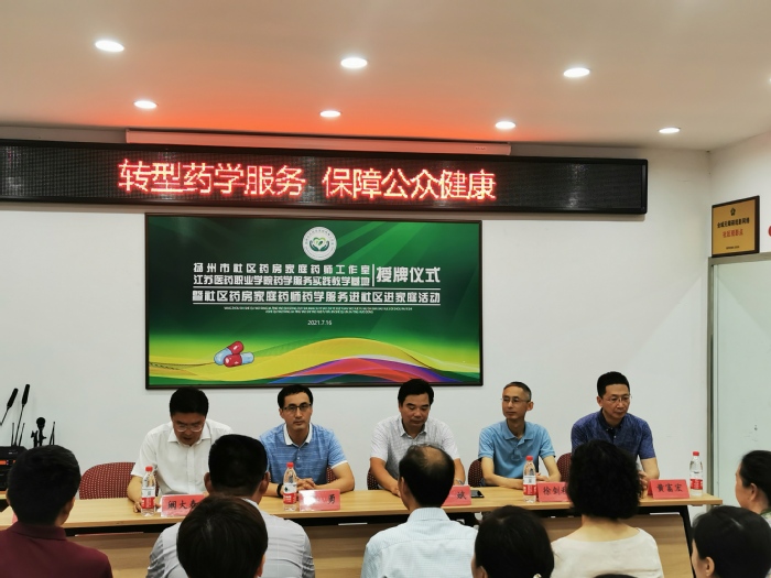 授牌仪式上,来自扬州苏羊医药有限公司的家庭药师代表结合自身的实际工作经历,就家庭药师开展居家药学服务的意义、如何开展居家药学服务等两个方面畅谈了自己的体会。扬州市市场监管局局长陈斌详细介绍了扬州市开展家庭药师居家药学服务的具体做法,转达了社会药店和基层医疗机构对高质量基层药学服务人才的强烈需求,提出与高职院校共建药学服务实践教学基地是培养药学紧缺人才的重要举措。