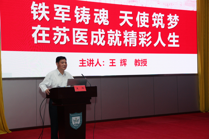 院长陈国忠为医学院、药学院全体新生讲授题为《以强国有我的姿态 做新时代的有为青年》的开学第一课。他饱含深情地回顾了建校80年来的发展历史,讲述了苏医蓬勃发展的良好现状,诠释了苏医的校训、校风和苏医精神,重点向同学们介绍了学校近年来所取得的一系列重大成绩。他强调,同学们作为新时代有为青年:一要有理想信念,应当确立马克思主义的科学信仰,树立共产主义的远大理想和中国特色社会主义共同理想。二要有格局胸怀,进一步提升认知范围,探索世界的广度;提升眼界,经受社会的磨练和实践。三要有责任担当,不忘初心、牢记使命,增长才干、用实际行动书写爱国之情;敬业爱岗、在为人民服务中茁壮成长。他希望,同学们将苏医作为梦想启航的地方,保持好昂扬的奋斗激情,矢志不移向着新的目标奋勇向前。