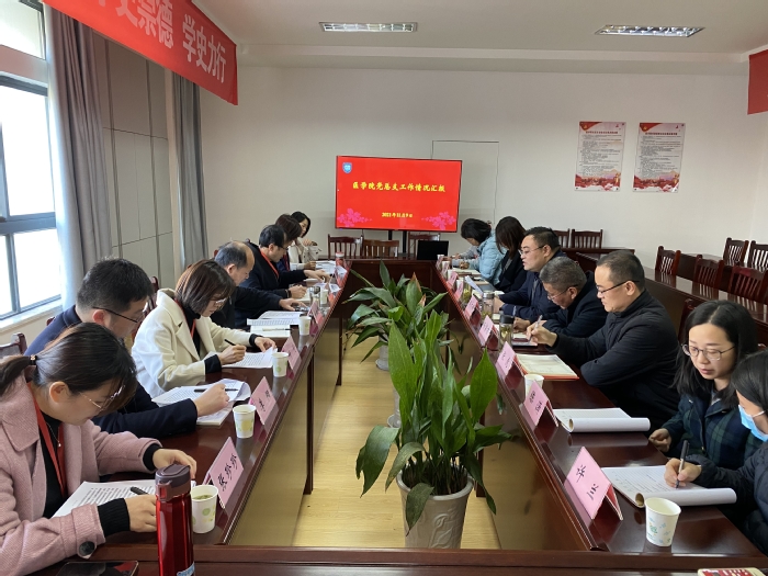 汇报结束后,巡察组组长徐伯静、副组长胡勇、组员周媛列席并听取了医学院党总支委员会议。会上,医学院党总支坚持第一议题制度,学习了习近平总书记关于党的百年奋斗重大成就和历史经验重要论述综述,同时就班子建设等议题进行了深入学习与探讨。