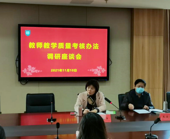 为加强我校教师队伍的管理和建设,准确了解和客观评价教师教学工作,11月10日下午,我校在学术会议中心第五会议室召开教师教学质量考核办法专题调研座谈会。副院长高璀乡,教务处相关人员、各二级学院(部)院长(主任)、分管教学院长(副主任)参加了会议。会议由副院长高璀乡主持。