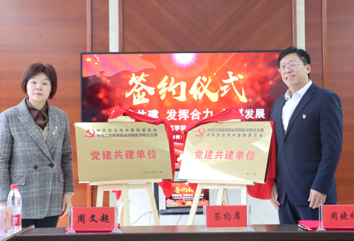 为进一步提高医教协同育人实效,构建校院双方“结对互动、双向促进、共同提高”的党建共建新格局,11月20日上午,我校医学院党总支与东台市中医院党委举行了党建“结对共建”签约仪式。副院长高璀乡出席了签约仪式,东台市中医院党委班子成员、医学院党总支党政班子及教师党员代表参加了仪式。