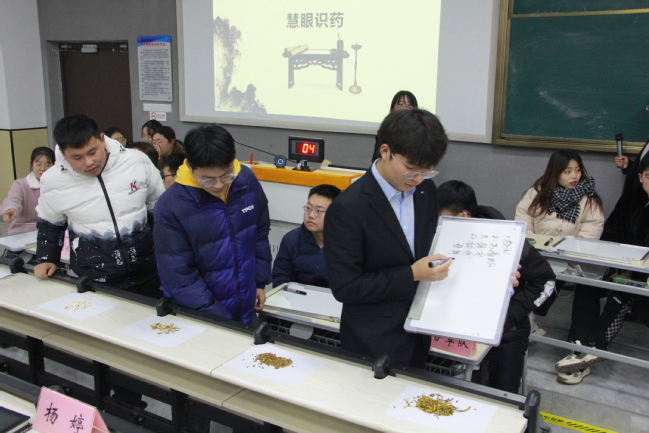 侍院长在活动上致辞。他表示,夯实基础知识,强化实训技能,是培养高素质、技能型中医专业人才的重要手段。多年来,我校一直重视学生理论学习和技能训练,为社会输送了5万余名德才兼备的医学人才,受到了社会的普遍好评。这次“中医节”中药学知识竞赛,既有中药学基本知识、中药识别基本技能比赛,也有中药组方应用对决,是一次集中检验考核,有助于提升同学们学习中医的积极性、主动性,提升同学们的综合素质,在全院形成学习中医的良好氛围。同时他鼓励参赛选手,希望各位选手能严谨、认真,把平时训练的好成绩充分展示出来;也希望各位观摩学习的同学以他们为榜样,把功夫用在平时,真正把自己培养成对社会、对人民有用的人才。预祝同学们赛出成绩、赛出风格、赛出水平!