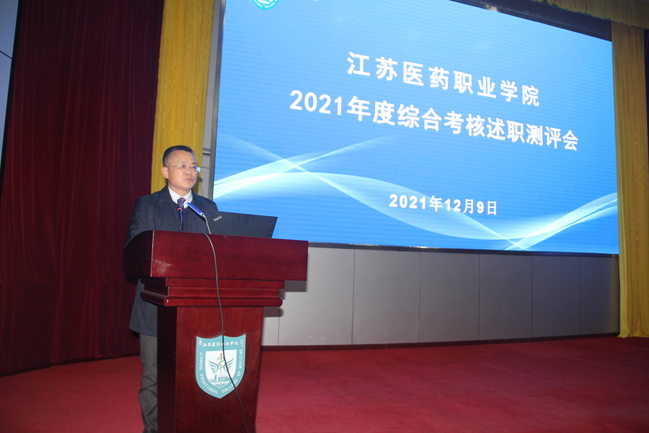 12月9日下午,我校在国际会议中心召开2021年度综合考核述职测评会议,在盐校领导、全体中层干部及教师代表参加了会议。会议由院长陈国忠主持。