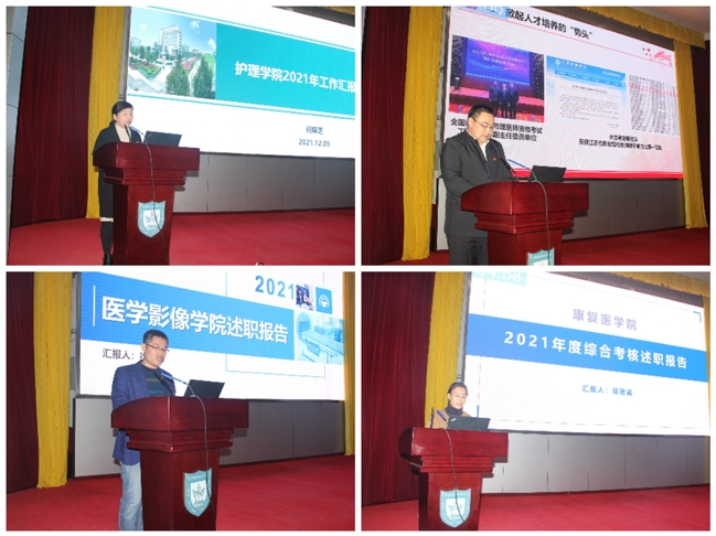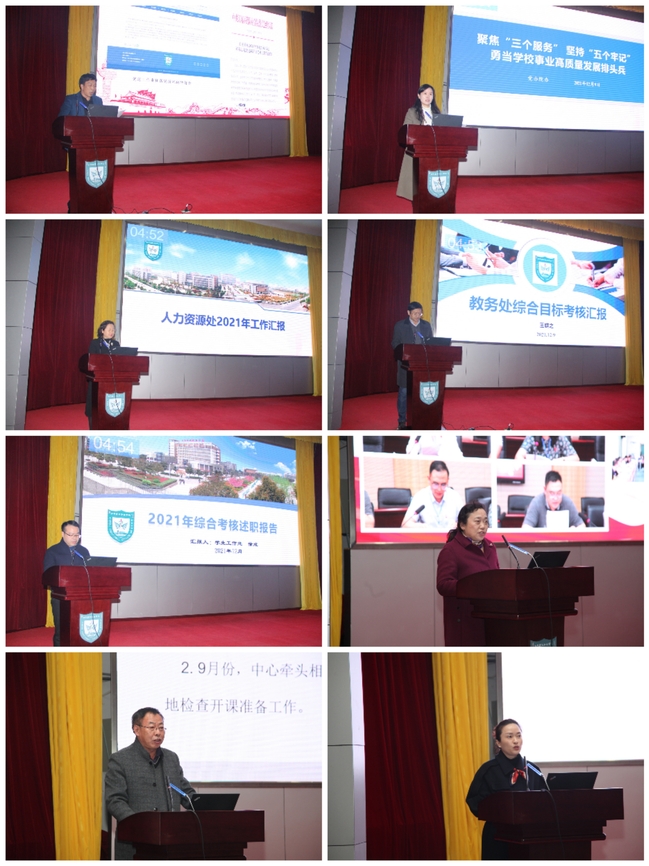 随后,8个教学单位、23个部门负责人先后汇报了2021年本单位重点工作完成情况及为推动学校党建工作、高质量发展开展的特色、亮点工作等。各二级单位高度重视,精心凝练,展示了本单位一年来的工作业绩。通过述职,各单位达到了互相学习、取长补短、共同进步的效果。