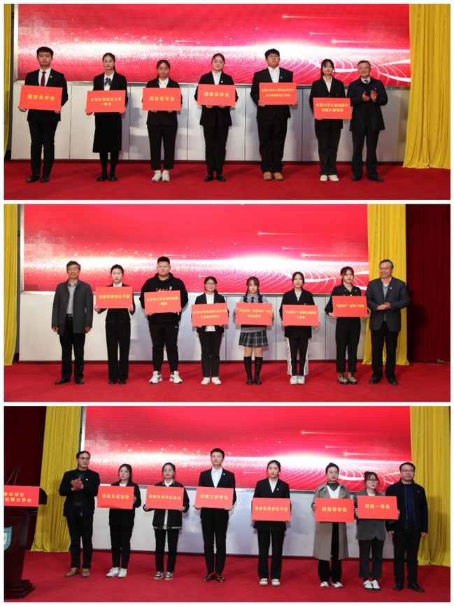 随后,校领导及相关部门负责人分别为获得国家级奖项、省级奖项及校级奖项的学生代表颁奖。