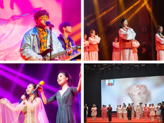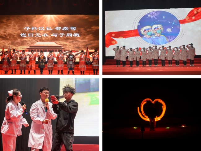 晚会在激情四射的乐队合奏《你要跳舞吗》中拉开帷幕。校园广播站带来的《配音秀》立意深刻,尽展青春风采,抒发家国情怀;跆拳道社和书法协会带来的表演《跆风》向我们展现出中华艺术的魅力;康复医学院手语操《万疆》用特殊的语言表达了对祖国强盛的自豪;护理学院的朗诵《生命之光》深切表达了我校师生爱岗爱校的真挚感情;大学生舞蹈团的《Secret Story of the Swan》动感十足,充满青春活力;子衿汉社的《兵击操演》将我国古代射礼、兵击搬上舞台,反映出华夏先民寓德于射、寓礼于射、寓教于射的珍贵人文精神;药学院的原创小品《戴夫的花园》以游戏植物大战僵尸为主线,以拍戏片场为背景,折射出坚持梦想的底色;医学影像学院的小品《互联网体检》以诙谐幽默的方式讽刺超前点播现象,引发掌声阵阵;医学院提供的舞蹈《重生》坚定展现出我校学子在抗击疫情中贡献力量的信心和决心;医学技术学院带来的走秀《怦然心动》展现出青春之姿,仪态之美;教师合唱《灯火里的中国》、大学生合唱团演唱的《星辰大海》倾情唱出我校师生对祖国的无限热爱和美好祝福,激发了广大青年学子的民族自豪感和自信心。晚会在同学们经久不息的掌声中落下帷幕。