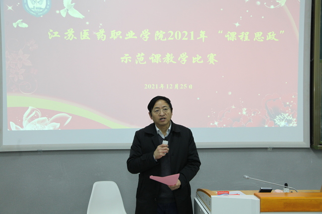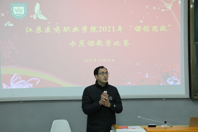 为深入贯彻落实教育部《高等学校课程思政建设指导纲要》及《江苏医药职业学院关于深入推进课程思政建设的实施方案》有关要求,发挥教学比赛对课程育人的促进作用,全面提升广大教师开展课程思政建设的意识和能力,今年4月,学校组织立项课程思政示范课程20门,为了进一步提升课程项目建设质量,助力学校人才培养育人和育才相统一,在全校范围形成“课课有思政、人人重育人”的良好氛围,12月25日,学校在教学楼D104举办2021年度课程思政示范课教学比赛活动,校内外全体专兼职教师观摩了此次比赛。