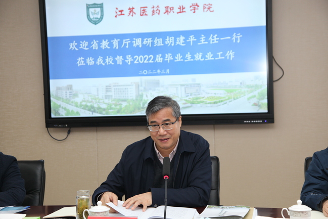 胡建平主任介绍了此次调研的主要目的和安排,对我校就业工作给予了充分肯定,就下一个阶段毕业生就业工作提出了几点要求:一是科学研判当前就业形势,创新工作方法,加快就业进度,教育引导毕业生及时就业;二是切实加强重点群体毕业生就业工作,特别要聚焦低收入困难家庭毕业生、残疾毕业生、少数民族毕业生等群体,实行“一人一策”精准帮扶,实现毕业生充分就业;三是严格就业统计上报,教务学工部门通力合作,确保毕业生就业数据精准。