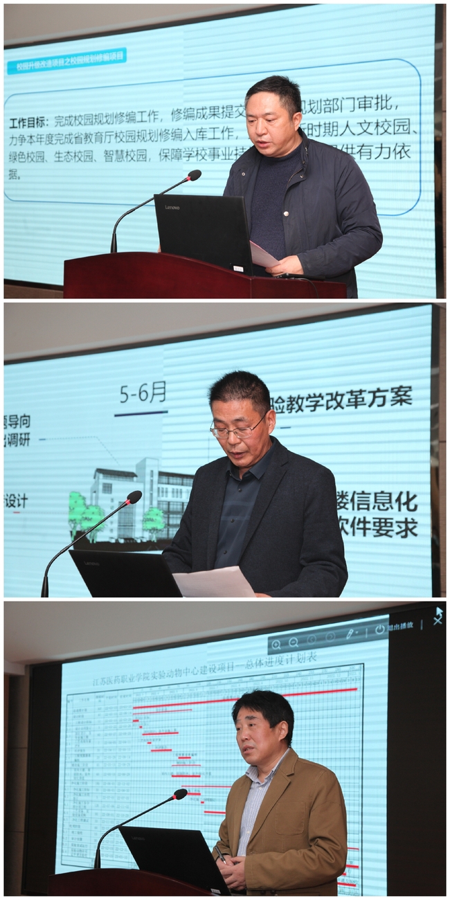 会上,侍院长宣读了《关于成立校园升级改造工作领导小组的通知》。随后,项目责任部门交流讨论工作目标及计划。后勤管理处、基础医学部、科技处等部门主要负责人分别就校园整体规划修编、学生公寓综合改造、基础医学部大楼建设、实验动物中心改造等四个项目进行了汇报。