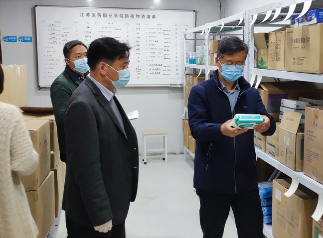 李书记、王院长一行现场检查了疫情防控物资储备库和食堂食品原材料储备库,以及物资存量情况、库房防潮防火、物资保质期等相关情况;了解了物资采购、领用流程、库存和使用情况,与后勤管理处防疫物资管理人员和食堂餐饮公司负责人进行了深入交流。
