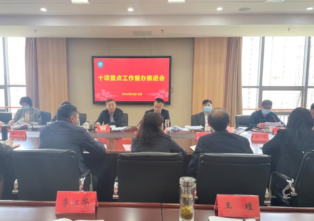 5月12日上午,我校在学术会议中心第五会议室召开2022年十项重点工作督办推进会。全体校领导,各部门主要负责人、各二级学院(部)党政主要负责人参加会议。会议由院长陈国忠主持。
