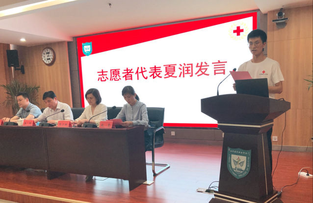 志愿者代表夏润表示,作为一名青年志愿者,应深入到群众最需要的地方,散发自己的光和热。他代表即将出征的学生承诺:一定会在带队老师的指导下遵守纪律,克服困难,团结协作,全力以赴,圆满完成预定的各项实践任务。