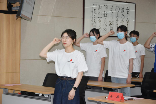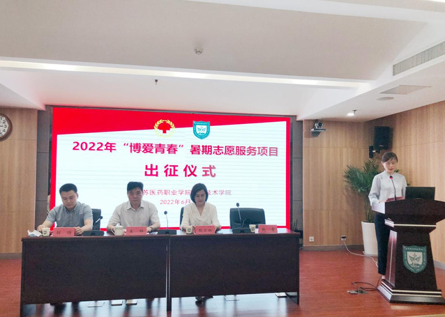 为响应省红十字会与省文明办、省教育厅、省卫健委、省团委等联合在高校红十字会广泛开展的“博爱青春”暑期志愿服务的号召,6月16日,医学技术学院2022年“博爱青春”暑期志愿服务活动出征仪式在图书馆第三会议室举行。副院长王辉,团委书记刘旸、医学技术学院党总支书记殷卫红,医学技术学院团总支副书记吴晗出席仪式,全体志愿者参加仪式。仪式由医学技术学院党总支副书记、副院长赵霄主持。