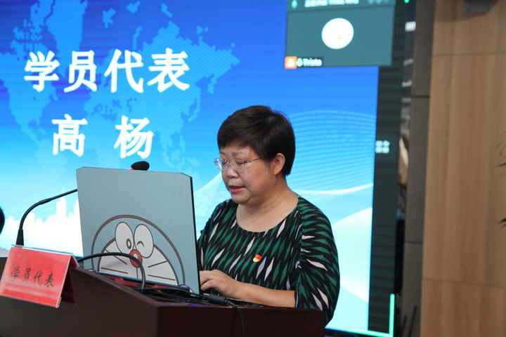 苏州市职业大学高杨教授作为学员代表作表态发言。她首先感谢学校的精心部署和周密安排,为学员们提供的周到服务,并对之后的培训学习充满期待。此次培训课程全面丰富,不仅涵盖药学前沿领域,而且涉及思政医德等方面内容,她表示全体学员们将珍惜此次学习机会,遵守各项规章制度,认真学习,与兄弟院校的同行们在相互交流中取长补短,共同进步。