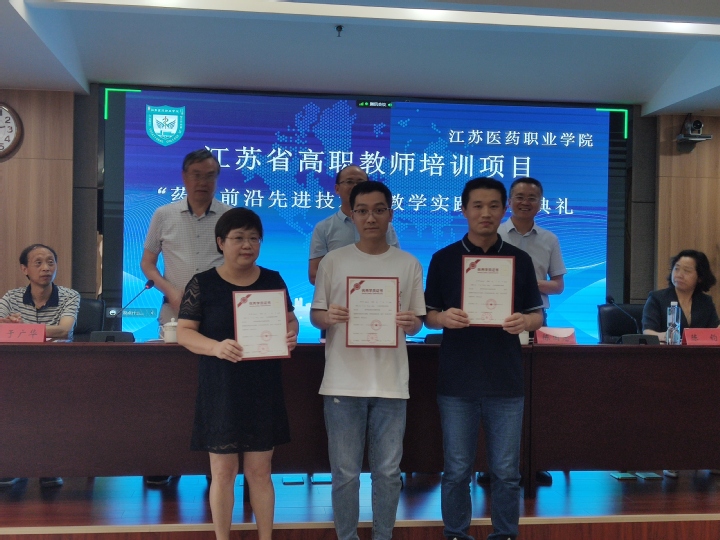 7月19日下午,由我校承办的2022年江苏省高职教师“药学前沿技术及教学实践”培训项目结业典礼在我校图书馆第三会议室顺利举行。江苏省高职师培中心主任聂伟进,我校校长陈国忠、副校长侍杏华出席结业典礼,相关职能部门负责人、药学院党政负责人、29名参培学员以及部分药学院教师代表参加了结业典礼。副校长侍杏华主持结业典礼。