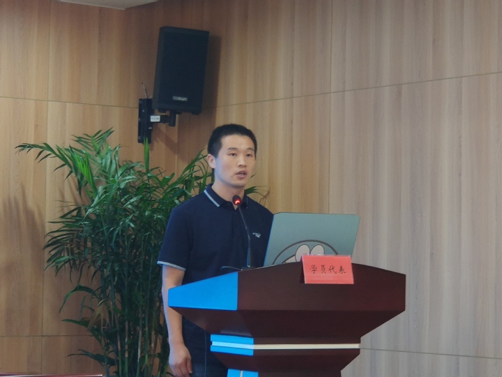 结业典礼上,优秀学员代表常州轻工职业技术学院汪熙老师发言。他首先对为此次培训付出辛勤劳动的各位老师表示真诚的感谢,并回顾了11天学习的点滴,分享了自己的心得体会和学习收获。他表示通过此次培训全面的了解了国内外药学前沿先进技术的发展趋势,领略到省内外专家学者的风采,体会到实践教学魅力,不仅增长了知识开拓了视野,更进一步拓展了教学思路,提升了实践教学能力。随后,聂伟进主任及校领导为3名优秀学员颁奖了奖状。