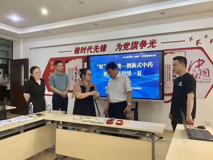 据悉,我校自2022年3月启动第八届中国国际“互联网+”大学生创新创业大赛申报工作,共收到3123项项目申报,经过学院推荐、校级复赛、校级终审、省赛初赛,最终《“蚊”之色变—创新式中药驱蚊产品舒缓一夏》项目脱颖而出,入围省赛决赛。在紧张备赛的时刻,校领导的关怀与指导极大激发参赛师生的士气,参赛师生表示全力以赴,积极备战,争取赛出好成绩,为学校的高质量发展贡献自己的一份力量。(团委吴君供稿、摄影,姚慧核稿)