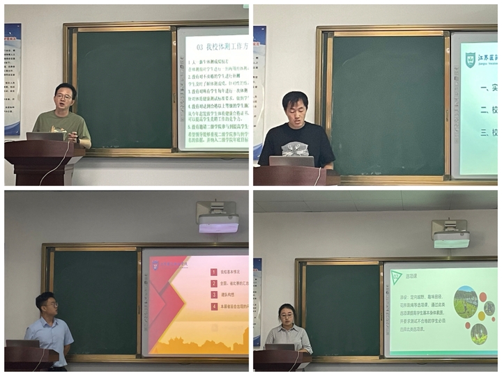 首先,公共基础学院院长王英姿对体育部2021—2022年度在教学、科研、校运动队建设、学校服务、培训方面做了全面的总结,充分肯定了体育部全体教师的工作成绩。随后,体育部教研室主任江沛及相关教师代表依次从课程改革、校外实习基地体育开展情况、课外活动开展、运动队建设、学生体质健康测试等方面向参会人员做了具体汇报,总结了体育工作各方面现状及未来工作方向,并提出自己的想法及建议,以便在以后更好地开展体育工作,为学校发展做出贡献。