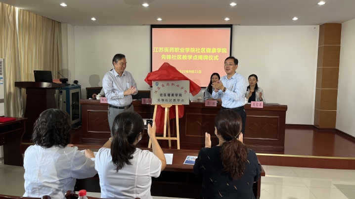 随后,我校社区健康学院副院长孟丽与先锋街道卫生服务中心主任郑汉高签订了社区健康学院合作协议,盐城市亭湖区卫健委党委书记、主任卞长生与我校副院长侍杏华共同为先锋街道社区健康学院揭牌,宣布了先锋街道社区健康学院的正式挂牌运行。