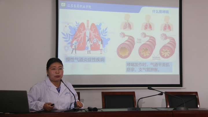 仪式结束后,我校药学院健康教育专家陈争珍作了题为“老年常见疾病用药指导”的老年特色教育公益讲座。讲座现场座无虚席,气氛热烈。此次巡讲活动为社区居民介绍了何为支气管哮喘、支气管哮喘治疗药物、支气管哮喘健康管理等三个方面的内容,让社区居民对支气管哮喘有了更深刻的认识,普及了健康管理常识,得到了居民的一致好评。(继续教育学院姜达珍供稿、摄影,姚慧核稿)