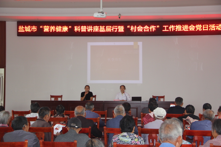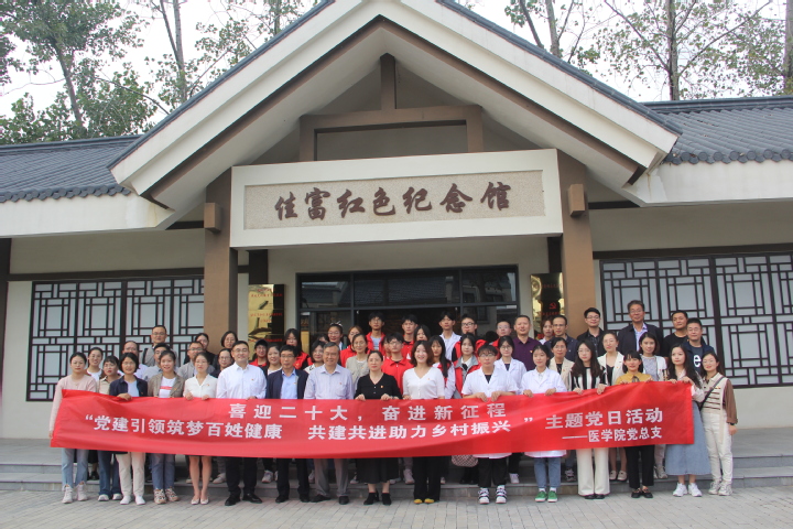 为迎接党的二十大胜利召开,进一步发挥基层党建引领作用,强化基层党组织社会服务水平,深化党员宗旨意识,9月25日,医学院党总支联合盐城市营养学会党支部、市图书馆学会党支部、市医学会党支部赴盐都区大冈镇佳富村开展主题为“党建引领筑梦百姓健康 共建共助乡村振兴”党日活动。党委委员、副院长侍杏华,党委委员、党委组织部部长陈洪魁出席了活动,医学院党总支全体党员、入党积极分子和学生志愿者参加了本次活动。