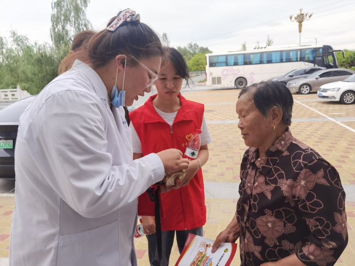 “厚朴”中医社学生志愿者、医学院学生入党积极分子深入社区,为居民发放健康知识宣传单页,并赠送中药香囊、艾灸盒等中医文创产品,受到居民的热烈欢迎,展现了青年学生勇担时代使命、奋力报效祖国的精神风貌。