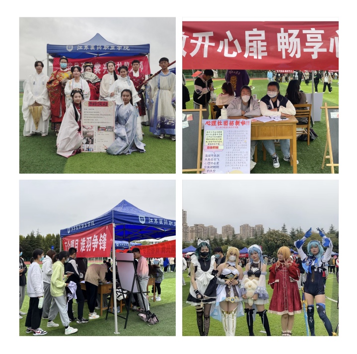 思想政治类、学术科技类、创新创业类、文化体育类、志愿公益类五个类别的社团通过形式多样、内容丰富的活动向我校师生展示社团特色。子衿汉社华装走秀,在秋日的阳光下聘婷生姿;音乐协会现场演唱,洋溢着青春浪漫的音符色彩;德法学社现场开设免费法律小讲堂,让同学们学法知法,与法同行;苏医青年志愿者协会、徐兆学青年志愿服务队等公益类社团坚持“奉献、友爱、互助、进步”的服务宗旨,助力提升大学生的思想道德修养。