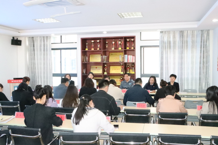 殷卫红书记代表医学技术学院热烈欢迎对接的各位党员领导干部,感谢大家对医学技术学院学生工作的大力支持,领学了学校关于《党员领导干部联系班级工作制度》文件精神并简要介绍了党员领导干部深入基层联系班级的工作内容和相关要求。