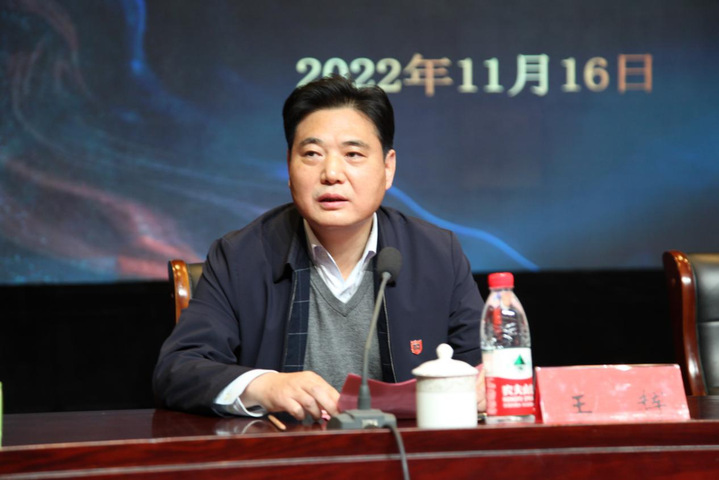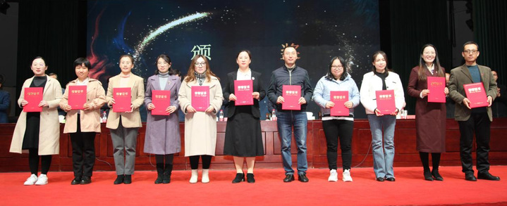 副院长高璀乡宣读了《关于公布2022年校级科学研究成果奖获奖名单的通知》和《关于表彰2017-2022年科技标兵的决定》,校领导分别为获得“第一届校级科研成果奖”、“科技标兵”的教师颁发了荣誉证书;郝书记、姜局长给省工程研究中心、省外国专家工作室负责人授牌。随后,姜局长对我校科技工作作了指导讲话。副院长高璀乡作了《科技创新与服务三年行动计划(2023—2025年)》宣讲解读,明确了“十四五”科学研究与社会服务发展规划总体目标和重点任务。