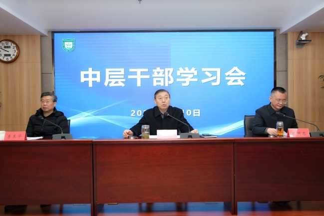 2月10日上午,我校在学术会议中心第三会议室召开中层干部学习会,全体中层以上干部参加会议,党委副书记、院长陈国忠主持会议。