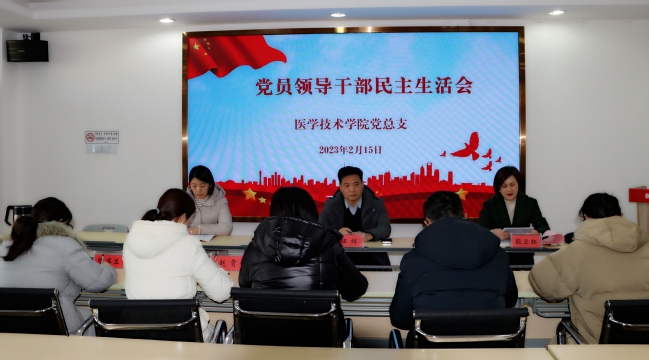 根据中共江苏医药职业学院委员会《2022年度民主生活会方案》(苏医委(2022)55号)的通知要求,2月15日下午,医学技术学院党总支在A308会议室召开了2022年度民主生活会,校党委委员、副院长王辉莅临指导。会议由医学技术学院党总支书记殷卫红主持,党总支委员会全体成员参加了会议。