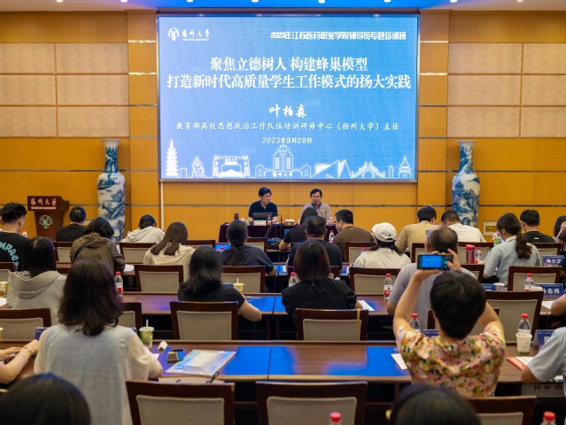 本次培训为期4天,以专题讲座为主,内容贴近学生工作实际,具有较强的指导性。江南大学马克思主义学院副院长、博士生导师唐忠宝教授结合具体案例深入浅出地介绍了高校思想政治工作创新发展的举措,为高校辅导员日常思政工作提供了充分的指导;扬州大学党委常委、党委宣传部部长张信华老师鼓励大家旗帜鲜明、理直气壮,将意识形态和舆论引导责任扛在肩上、落到实处;教育部高校思想政治工作队伍培训研修中心(扬州大学)主任、扬州大学原党委副书记叶柏森教授从“学生工作蜂巢模型的提出”“学生工作蜂巢模型的实践”“学生工作蜂巢模型的成效”三个方面向学员分享了打造新时代高质量学生工作模式的扬大实践与扬大经验;扬州大学医学院党委副书记、2023年江苏省最美高校辅导员左红梅老师围绕“‘一站式’社区背景下大学生情感思政的创新探索与实践”主题,介绍了大学生情感思政的实践经验;扬州大学心理健康教育中心副主任周敏结合自身处理危机事件的丰富经验,重点阐述了高校校园心理危机的工作流程。