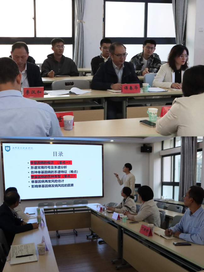 青年教师是学院的新鲜血液,为学院的发展带来了生机和活力。学院领导高度重视对青年教师教学能力的培养,要求青年教师用心备好每一堂课。蒋锋老师对《医学遗传学》课程中“单基因病”章节的内容进行了40分钟汇报,与会领导和老师对本次汇报课从授课内容、PPT制作、授课方式方法、授课节奏以及课程思政设计等方面给予了指导和点评,强调青年教师需熟练掌握教学内容,精心设计教案,拓宽师生互动方式,将思政元素融入课堂。