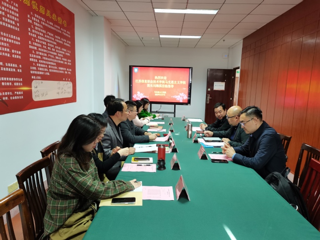11月7日,江苏省高职高专思想政治理论课教学指导委员会委员、江苏信息职业技术学院马克思主义学院院长刘海滨来我校马克思主义学院进行调研指导。马克思主义学院直属党支部书记、宣传部副部长周文超、院长袁金勇、各教研室主任及教师代表参加调研活动。