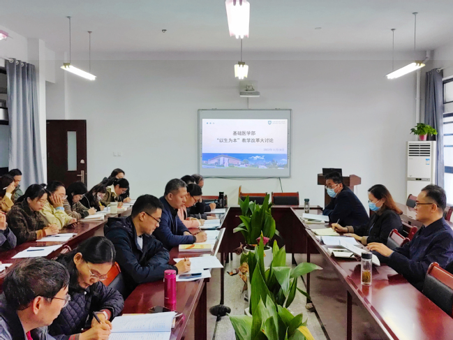为落实立德树人根本任务,深入贯彻“以生为本”教学理念,真正提升教学实效,夯实学生基础医学知识,助力学生职业发展,11月10日下午,基础医学部围绕“以生为本”开展教学改革大讨论,部门全体教师参加会议。会议由副主任张虎主持。