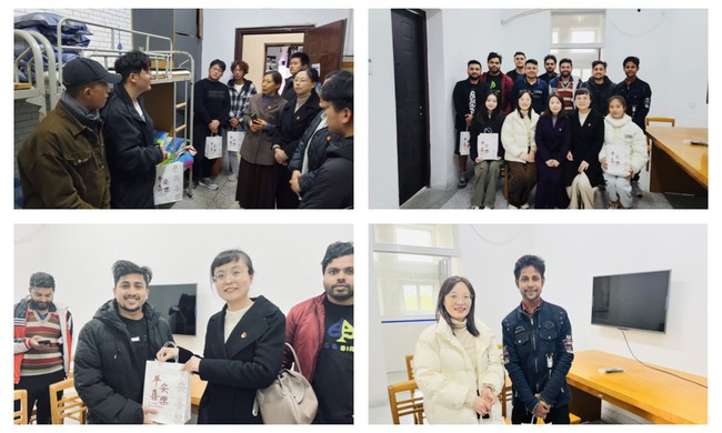 此外,为体现对少数民族学生和留学生的关怀,深入了解和准确掌握此类学生的思想、学习和生活动态,全面助力“三全育人”实践成效,帮助其更好地适应校园学习与生活,党支部书记殷卫红带领其他党员教师分头前往学生公寓看望少数民族学生和留学生,与他们进行座谈交流,发放“心理加油包”。她鼓励少数民族学生与同学、舍友在学习上互相学习、共同进步,在生活上互帮互助、团结友爱,用实际行动为民族大家庭的和睦共荣增光添彩。她还叮嘱留学生注意身心健康,加强汉语学习,主动参加学校各类文体活动,搭建文化交流的桥梁,充当优秀文化的传播者。