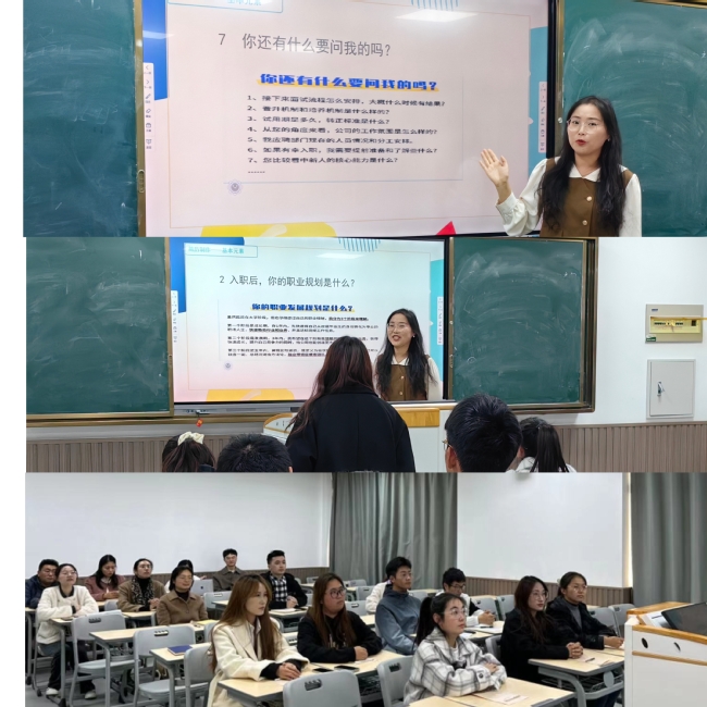 备课沙龙上,郭秋宏老师结合学生求职面试的实际情况,讲述了面试的注意事项,包括如何打造良好的仪表仪态、有效进行沟通交流以及如何制作简历等,同时邀请同学进行情景演绎,现场气氛活跃。
