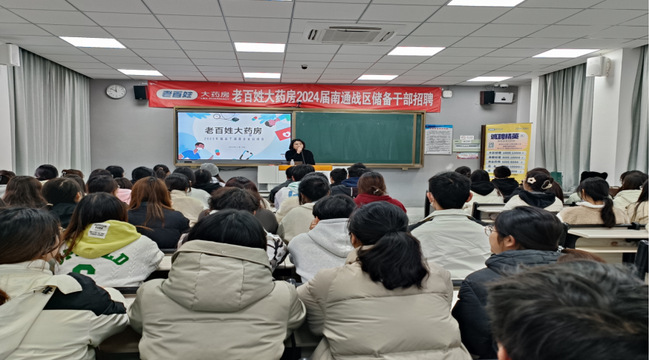 会上,张杨围绕老百姓大药房连锁股份有限公司的企业背景、企业文化、发展愿景,结合储备店长岗位的工作性质与内容等方面进行介绍。现场气氛热烈,同学们就药学专业发展前景、岗位能力技能要求等问题进行提问。张总监耐心地为同学们答疑解惑,并诚挚邀请同学们加入老百姓大药房储备干部订单班。